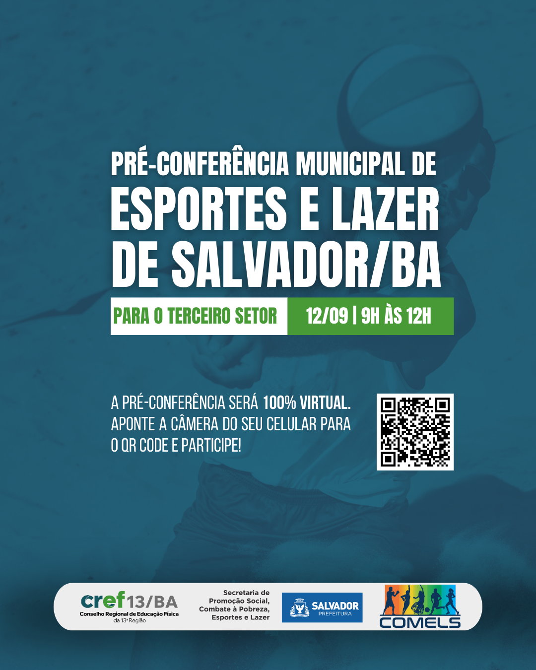 A Pré-Conferência Municipal de Esportes e Lazer de Salvador para o terceiro setor acontece no dia 12 de setembro, das 9h às 12h, em formato 100% virtual.
