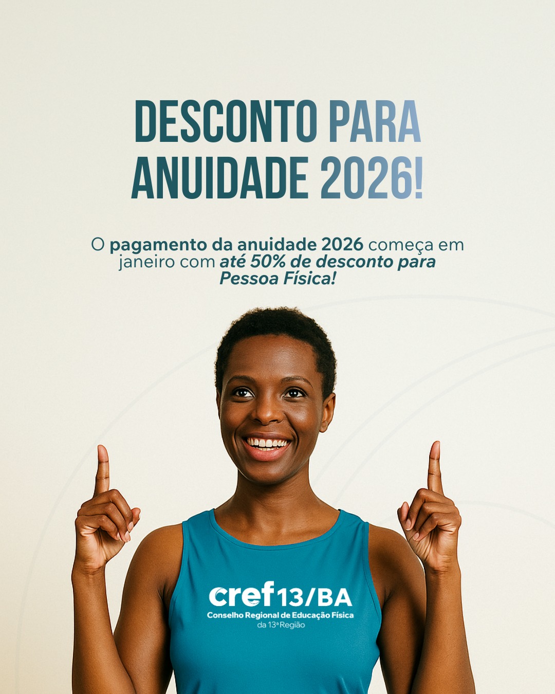 Janeiro é o mês de garantir o maior desconto do Brasil na anuidade do CREF13/BA.