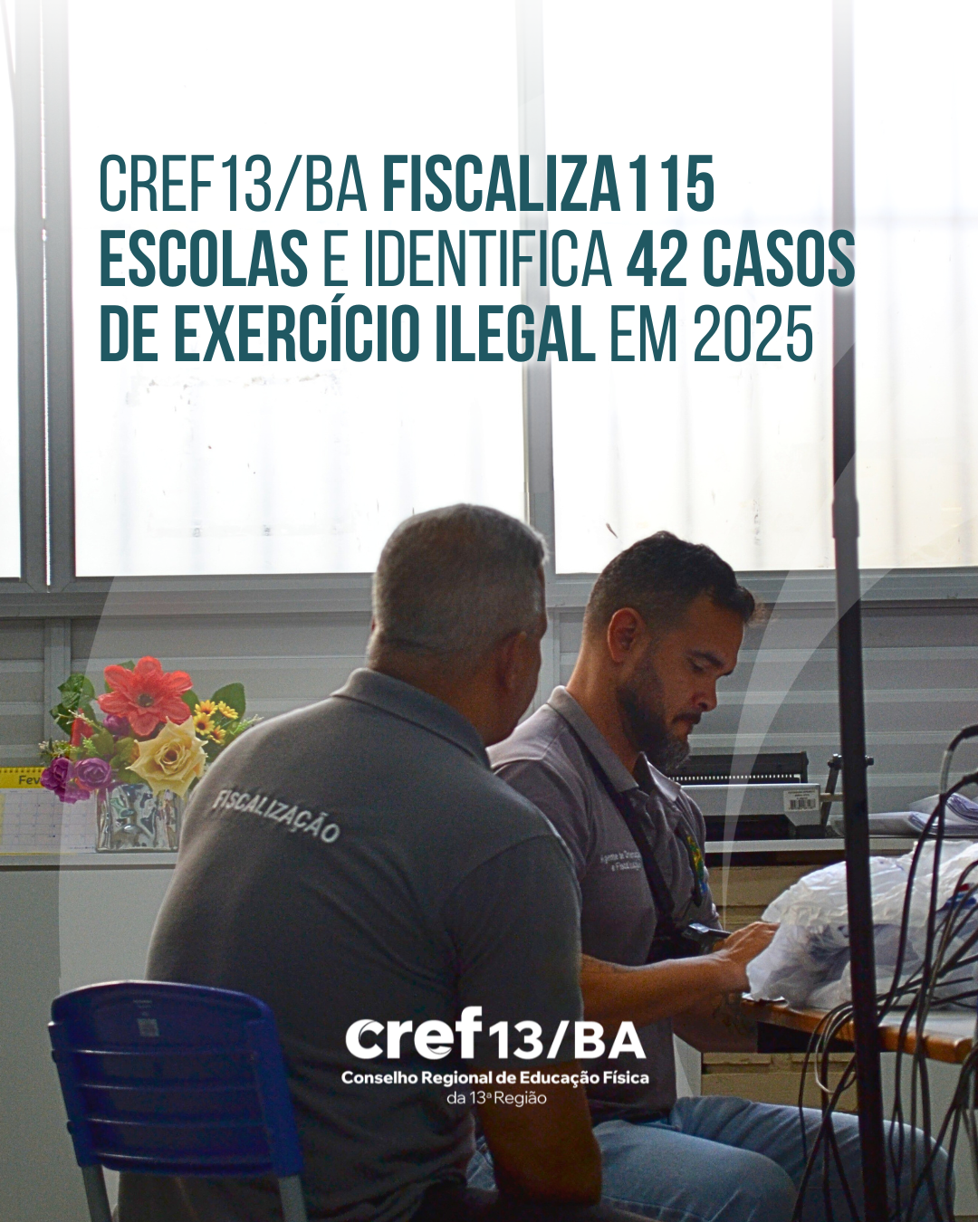 Durante o primeiro semestre de 2025, o DEOFIS percorreu 24 municípios, fiscalizou 115 escolas e identificou 42 casos de exercício ilegal da profissão. Esses números reforçam a importância do CREF13/BA em fiscalizar não apenas academias, clubes, condomínios e espaços públicos, mas também a base: as escolas. Pessoas sem formação em Educação Física que lecionam atividades colocam em risco não apenas a segurança, mas também a correta formação física e motora dos alunos, prejudicando seu desenvolvimento e a qualidade do aprendizado.